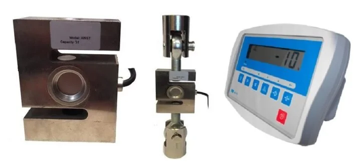 This AWST crane scale kit consists of an S-Type Load cell with two rod end bearings, two brackets and weight Indicator, ideal for load and force measurement.